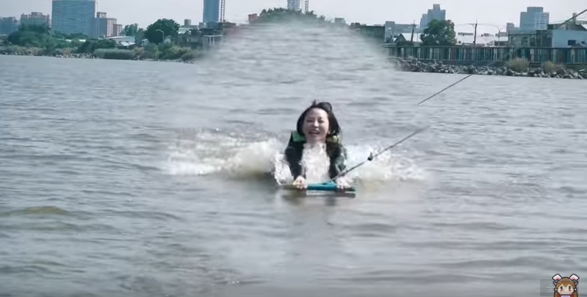 「如果你覺得SUP玩起來好像比較平靜,你想要玩一點刺激的那也沒有關係, 另外一項是非常具有挑戰性的水上運動」,第二站咪妃來到社子島的「嘻嘻哈哈滑水學校」,她很有自信地說,「我今天是來參加他們的女神特訓班」,而到社子島要來玩的是「寬板滑水」,英文名稱叫Wakeboard,有另一個比較進階版的叫做快艇衝浪(Wakesurfing),它會沒有任何的鞋子或是繩子的輔助,所以會比較困難一點,「但是我覺得像我這麼天資聰穎的人,應該可以馬上上手吧。」