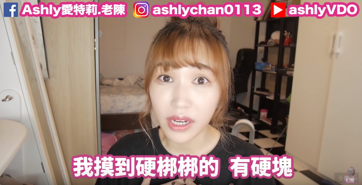 Ashly 22日無預警自曝自己從13、14歲就開始吃避孕藥,甚至某次洗澡時,突然覺得胸部有硬塊,「摸起來硬梆梆的」,不時還會伴隨著疼痛感,Ashly懷疑自己是否得了癌症,腦中浮現「我才15、16歲,有很多事情還沒做」,當下她嚇到衝出浴室,趕緊向媽媽說,病就醫檢查。