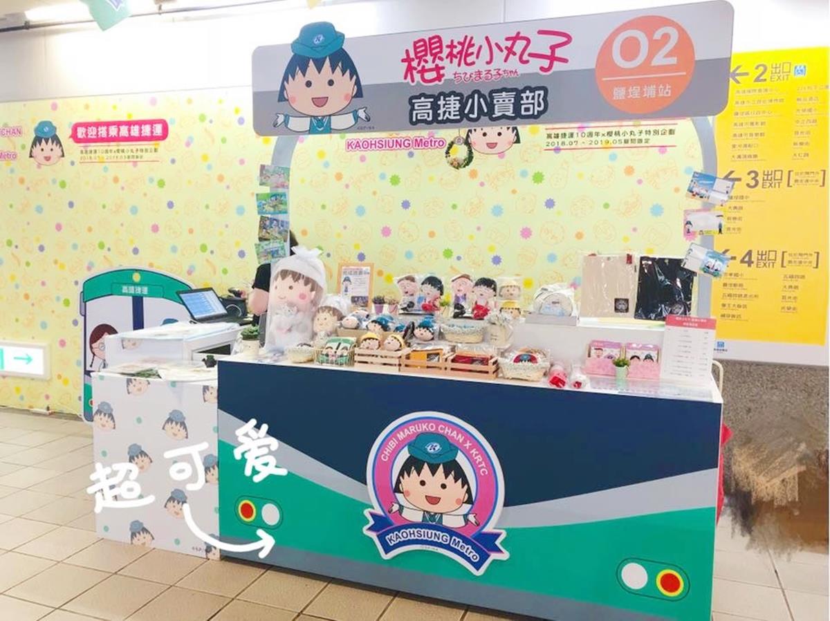 除此之外,在高捷橘線的鹽埕埔站還特別設置了「櫻桃小丸子主題車站」,重現《櫻桃小丸子》卡通內的場景,像是櫻桃小丸子的家、公園、三松屋雜貨店等,還有設置拍照機、快閃店。其中櫻桃小丸子最愛去的「三松屋雜貨店」裡還有扭蛋可以轉喔!