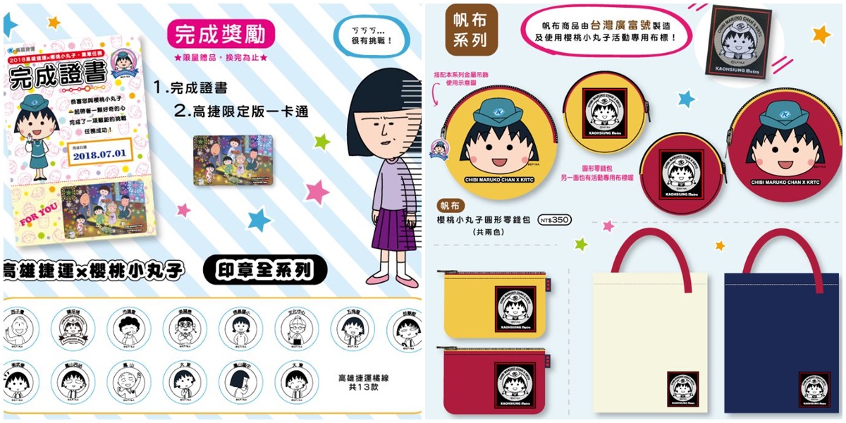 喜歡《櫻桃小丸子》的姊妹們也不用擔心這次的活動是不是沒辦法留下任何紀念品,高雄捷運也特別辦了集點活動「高捷獨家37款櫻桃小丸子紀念章」!只要持集章DM,集滿全系列37款印章,就可獲得「完成證書」及「櫻桃小丸子一卡通」限量獨家贈品,喜歡《櫻桃小丸子》的姊妹們千萬不要錯過。不然,在高雄捷運橘線鹽埕埔站還有小丸子的限定周邊快閃店、美麗島站也有《櫻桃小丸子》的聯名商品專賣店,大家有空都可以過去晃晃~