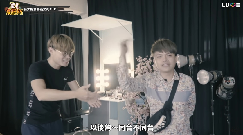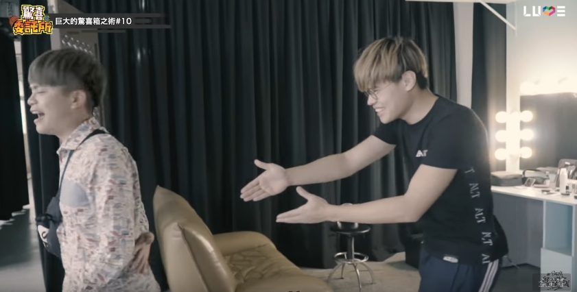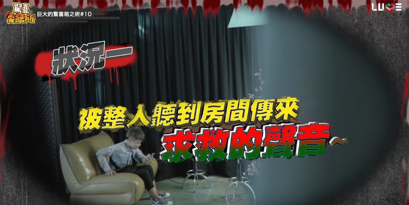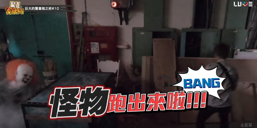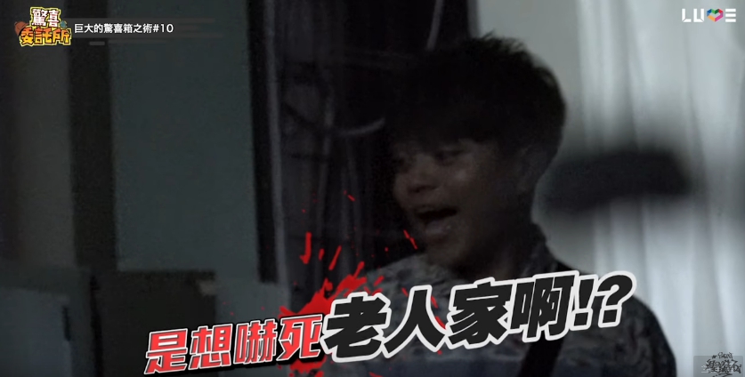 而驚喜就這樣展開了,起初蔡阿嘎聽到隔壁房間傳來求救的聲音 ,還有敲打聲,由於聲音越來越大,他不得已走去房間查看,一到房間之後,前方就有巨大的箱子,而蔡阿嘎發現聲音就是從箱子發出來的,他帶著恐懼的心,緩緩地走向前,箱子內的「怪物」不斷說,快來救我,我被關住,鑰匙在那...蔡阿嘎不但沒有要幫它,更往門口的方向走去,他疑似發現這是整人遊戲,為了讓該狀況更真實,下一秒現場濃煙四起、警報大作,「怪物」就活生生的從箱子裡出來,蔡阿嘎臉色大變,直說不要過來,甚至拿起旁邊的棒子朝怪物身上揮,當蔡阿嘎正在反抗時,外頭就傳來聖結石的笑聲,「這個就是在懲罰你,就是壞人」,蔡阿嘎知道被整瞬間變臉:「你說這個廣告50萬我才來的喔,現在是沒錢嗎?」更撂下狠話說,「以後齁,以後發他不要發我!沒有合作機會了啦。不過,該影片一下就被網友識破,純屬娛樂,兩人並未真的絕交!