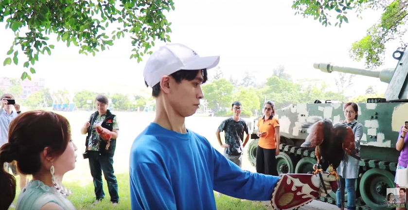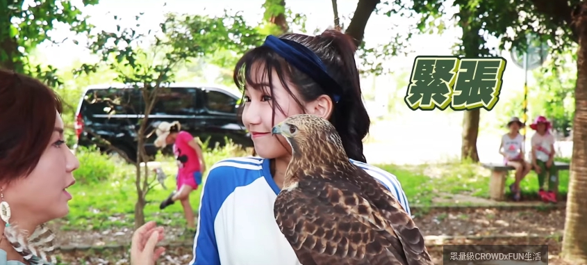 第二站他們倆要來挑戰手臂架鷹,家寧顫抖地說,「我一開始覺得不害怕,等到我剛剛靠近牠的時候,我就會怕了」,不過為了達成目標,家寧再怎麼害怕也要跨越心理的障礙,成功手臂架鷹。