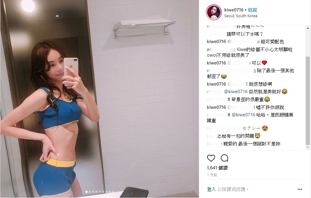 雖獲得不少好評,但留言中卻有眼尖網友吐槽:「Kiwe的修圖不小心太明顯啦owo(不用修就很美了」、「背景歪的很嚴重」、「除了最後一張其他都歪了」對於P圖留言,KIWE也高EQ的坦白:「就很想修啊」、「噓不許你胡說」