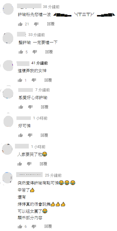 許瑜被整後的模樣也讓網友替她委屈,紛紛留言寫下:「許瑜粉先怒噓一波」、「整許瑜一定要噓一下」、「這樣弄我女神」、「感覺好心疼許瑜」、「好可憐」、「人家要哭了啦」、「突然覺得許瑜有點可憐,辛苦了」,只能說在不瘋狂就等死真的太壞了XD