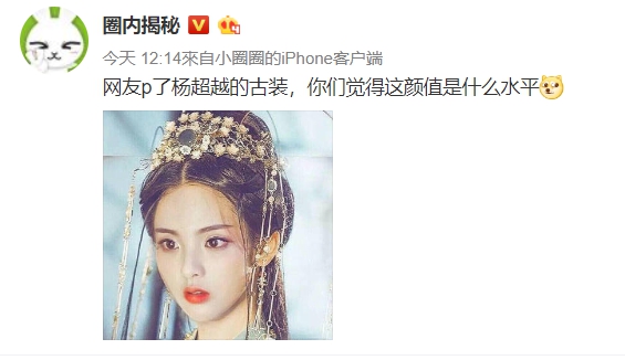 根據微博上圈內揭密發文問:網友P了楊超越古裝照,你們覺得這顏值水是什麼水平?