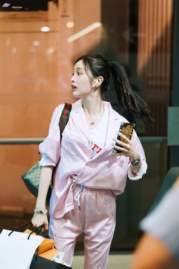 7月3日,有網友曝光了一組吳宣儀在機場的照片,照片中的吳宣儀穿著一身睡衣造型的粉色衣服,背著單肩包,戴著一副墨鏡,感覺非常的時尚幹練。吳宣儀睡衣這個話題也是迅速登上了微博熱搜排行第一,被廣大粉絲所關注,許多網友們都說:能把睡衣穿得這麼好看,也是沒誰了!一般人穿肯定不會是像她這樣子,話語之間都是對於吳宣儀的穿搭還有顏值所佩服。不過有許多眼尖的粉絲也發現吳宣儀這次的行頭算起來可是超過十萬,整身Gucci和LV及各類精品,讓網友們看得眼花撩亂。