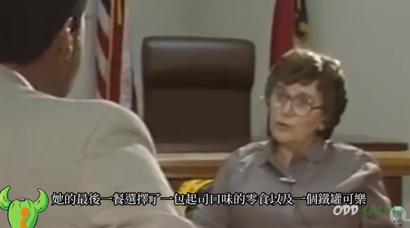 奇怪仙人掌接著介紹道第二位是Velma Barfield,她在1971至1978之間殺害了7個人,她的最後一餐選擇了起司口味的零食和一罐可樂,也因為如此簡單反而讓當時的人覺得非常詭異!