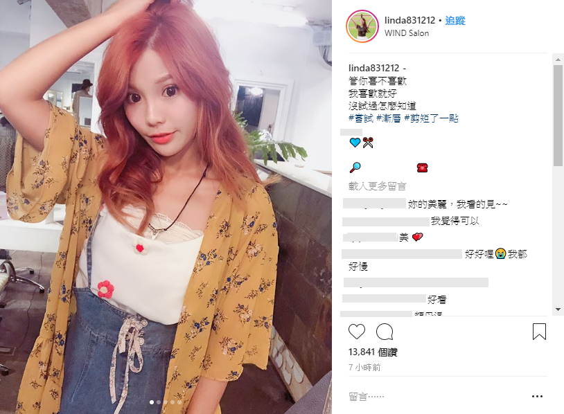 琳妲的新造型也讓粉絲們相當驚豔,紛紛留言:「超漂亮」、「你的改變我看得見」、「這顏色不錯看」、「不一樣的感覺」、「很正」、「自己喜歡最重要」、「還是很美」、「喜歡」。