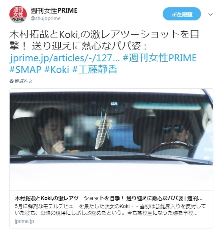 傑尼斯天王木村拓哉被封為收視大神,一舉一動都是外界焦點,對家庭隱私相當保護。不過隨著他的二女兒木村光希5月以模特兒出道進軍演藝圈,父女同時變成公眾人物,更引起外界關注,近日被拍到獨自開車接女兒放學,更是閃瞎其他家長!15歲的光希目前仍是高中生,在東京都內的英國國際學校就讀。在學校也被其他同學熱烈討論。