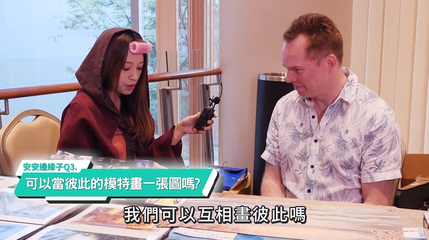 除了與高顏值coser互動引起討論外,阿民挑戰與知名畫師互相擔任彼此的模特兒作畫時,更少見的展現了對插畫的天分,雖和專業畫師的細膩度有所落差,但依照花不到一分鐘即完成的速寫來說,阿民的表現可以說是非常優秀的拉~至於魔法大會中又發生了什麼有趣的事呢?小編就賣個關子,大家歡迎到阿民與殘編合作經營的頻道收看完整版嚕!