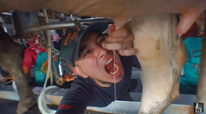 其實剛剛擠出的生乳事需要經過消毒的,但影片中導演還是親自嘗試喝生乳,他也表示「這樣喝奶是最原味,但是是錯誤示範」,他也自嘲「youtuber為了封面可以做很多事情」,喝完之後他也大讚生乳「蠻新鮮的」。