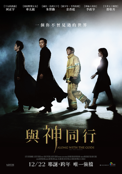 《與神同行》的續集《與神同行:最終審判》台灣即將在今年暑假8月8日上映!原班人馬陰間使者河正宇、朱智勛、金香起繼續帶領我們探索未知世界!而這一次,《屍速列車》帥氣強悍的馬東石加入主角群,將在電影中飾演家神。這一次新出的海報將所有重點人物都加了進去,有三位帥氣的地獄使者以及《與神同行》第一集金自鴻的弟弟金秀鴻(金東旭飾演)為第49名貴人,延續上集的內容,再加上飾演家神的馬東石,主角群氣勢驚人,引人期待。