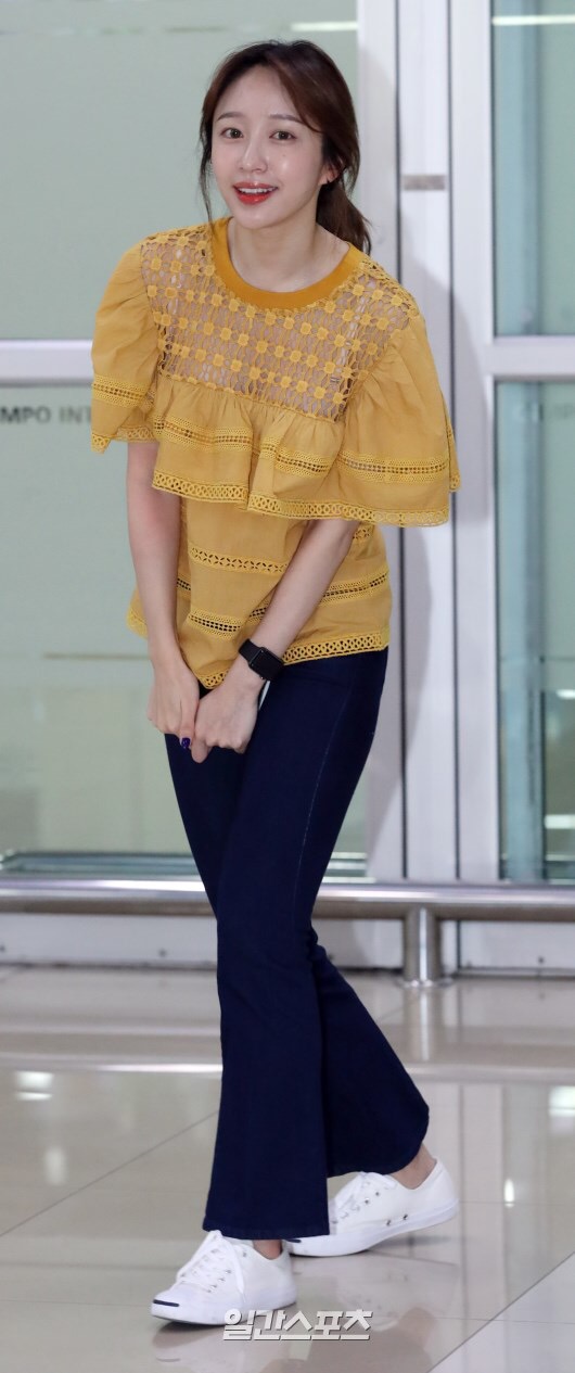 近日結束了日本行程,Hani與成員透過金浦國際機場返回韓國,淡妝現身的她,美貌再度引起討論。但不少人注意到的是,Hani穿著黃色透視裝。