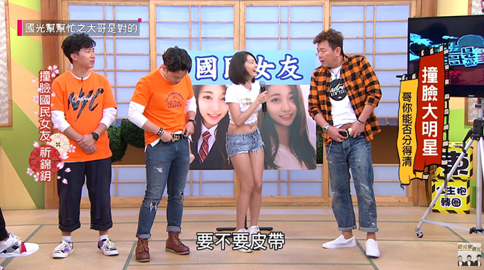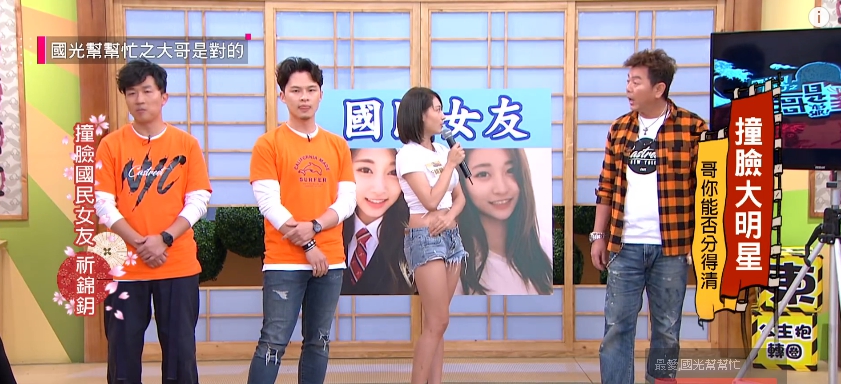 近日祈錦鈅錄製《國光幫幫忙之大哥是對的》節目,她因為與周子瑜有相似的容貌,因此受邀該該節目的「撞臉大明星」單元。祈錦鈅當天身穿白色T恤,並將衣服往上綁起來,性感露出腰間,下身則著超短熱褲,一出場後,可以看見她的褲子似乎不合身,頻頻露出內褲,一旁的主持人庹宗康貼心地提醒:「妳的褲子往上拉一點」,並詢問祈錦鈅要不要繫上皮帶,暖心替她救援。