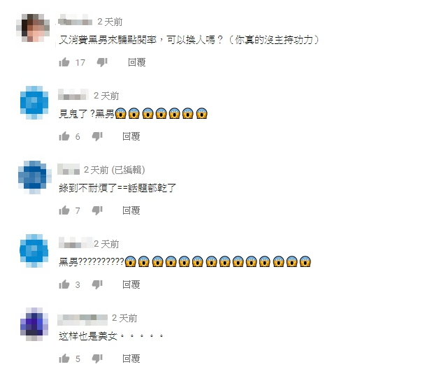 事後,受訪女主角似乎相當介意黑男對她目測外表的年齡,她再度問說,「我看起來真的那麼老嗎?你可以重新猜一次嗎?」黑男立馬解釋,並說出「你看起來98年」的甜話,逗受訪女主角開心。該段影片上傳後,引起網友的砲轟,批評黑男不會主持,甚至還有人直言:「只能靠爛抵制了!」