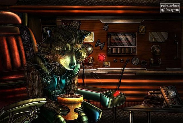 ▼孤身一人的火箭浣熊,坐著獨自感傷。
