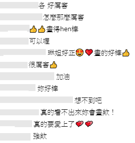 琳妲平時不曾透漏過自己還有繪畫的才藝,她也表示:「我下次認真的時候不知道要等多久了」不過琳妲一認真起來,畫工真的是超級讓人驚豔,粉絲也熱情留言:「好美 跟妳一樣美」、「你的才藝,我看的見」、「真厲害~、怎麼那麼厲害」、「畫得hen棒」、「真的看不出來妳會畫欸!」。