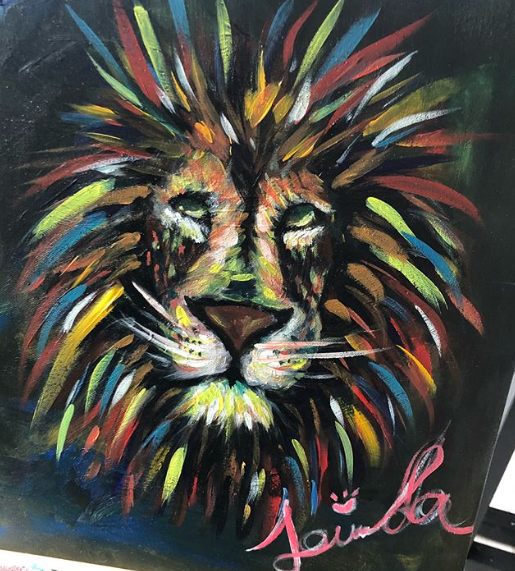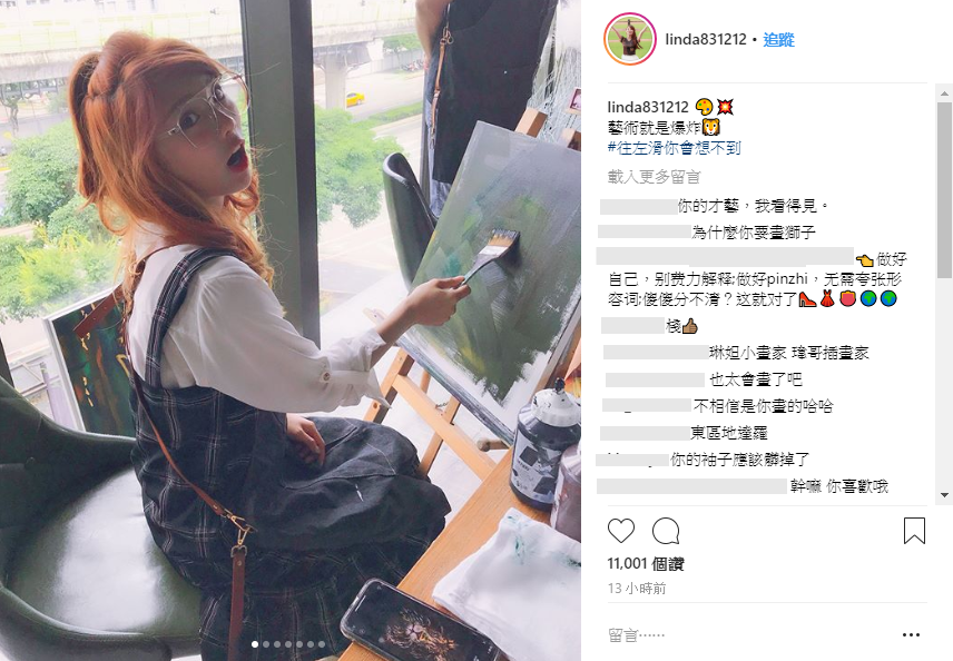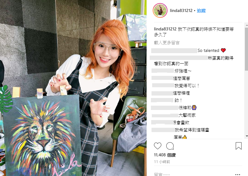8日琳妲在自己的IG打上「藝術就是爆炸」並放上自己與畫作的合照,第一張照片中琳妲還在為作品上底色,往右滑才看見了廬山真面目!琳妲繪畫的主題是一隻獅子,只見在琳妲的一筆一畫之下,獅子的鬃毛既華麗又狂放,完全畫出了草原之王的霸氣,就連眼神都栩栩如生!另一方面她也在限時動態拍下雙手沾到染料的模樣自嘲:「藝術就是髒小孩」!