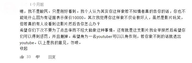 最近小煜因為好奇「如果看到保證取物金是一萬元,大家會有甚麼反應」,拍了一支實驗性的影片,在一台普通的娃娃機台上標示「保證取物金10000」,並安裝攝影機觀察民眾反應。雖然小煜的本意只是覺得有趣,但影片一出便被許多網友砲轟「會被檢舉吧」、「有涉及賭博罪的可能」「身為一名Youtuber做這種事會教壞人」尤其是他在影片裡的一句「我不怕警察抓」更激起眾怒,引起不小風波。