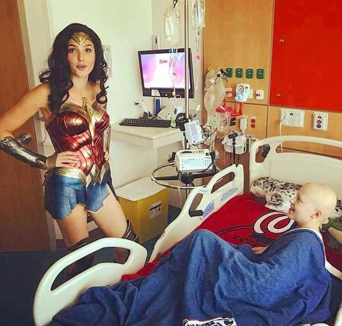 原來在華盛頓拍戲的蓋兒加朵,特別抽空跑到維吉尼亞州一家名為 Inova 的兒童醫院去探望病童。特別的是,蓋兒加朵還親自穿上了相當緊身的神力女超人戰袍驚喜來到醫院,讓所有孩子瞬間都覺得像是親眼看到女性超級英雄站在自己的眼前。