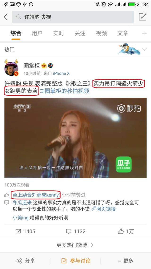 最後微博「扒姐娛」更一針見血的說:許靖韻去了一次央視,得到了什麼?她的唱功早就被證明過了,可是沒有人氣!如果可以選擇,她肯定願意上湖南衛視和浙江衛視,成為火箭少女101的一員。