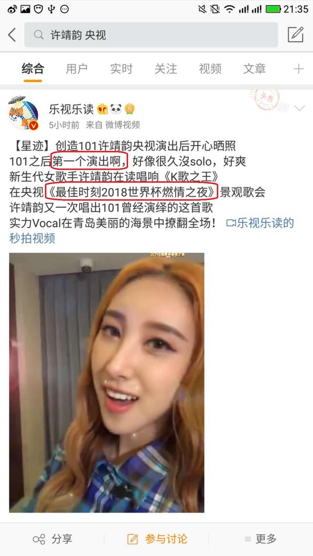 根據新浪看點上博主「扒姐娛」分析:7月6日,浙江衛視的“奔跑嘉年華”晚會如期上演,火箭少女101強勢加盟,成為當晚收視率最高的表演。與此同時,許靖韻也上央視的世界盃特別節目,唱了一首《K歌之王》。