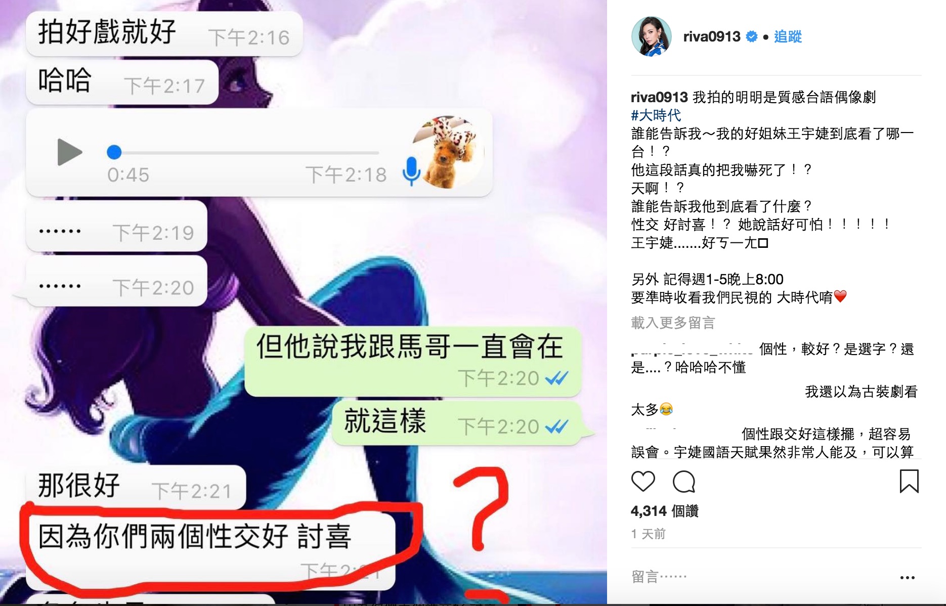 日前也po出自己與閨蜜王宇婕的對話內容,聊到王宇婕看了小甜甜演的新戲,先是鼓勵小甜甜拍好戲就好,接下來卻話鋒一轉,語出驚人地說「因為你們兩個性交好,討喜」,也讓小甜甜直呼「她說話好可怕!」