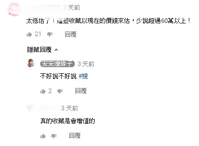 此片推出後,除了釣出許多模型迷大呼羨慕,也表示的確是男人的夢想外,更意外釣出許多網友推估收藏真實總價,並激動表示:依照這些收推估,殘編(阿憲)的財力肯定很驚人!