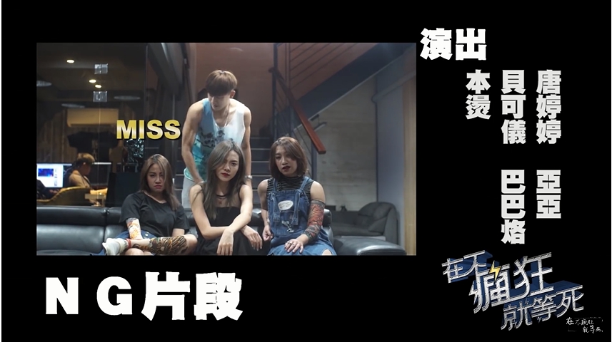 「我乾哥跳(八家)將的啦」、「我收了一票乾弟,他們都叫我一聲姊」你身邊是否也有這樣的女性朋友呢,彷彿不嗆聲就沒辦法好好講話,這次「在不瘋狂就等死」將這些耳熟能詳的「太妹語錄」收集起來拍成一支別出心裁的影片,片中亞亞、唐婷婷與貝可儀三位女孩一改平日形象,扮演起逞兇鬥狠的太妹,而團草「巴巴烙」則扮演吐槽的角色,拿起報紙捲狠揍三位太妹的頭,毫不心軟,非常的敬業。