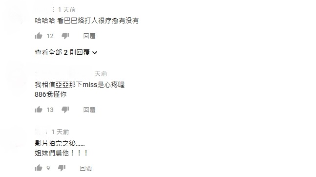 由於巴巴烙實在太敬業,許多粉絲為挨打的三人大感心疼,紛紛叫她們「快去申請工傷」,也有人預言殺青後巴巴烙一定會被報復,而眼尖的粉絲也發現,巴巴烙在打亞亞的時候居然miss了一下,「亞巴CP」的粉絲們立刻躁動起來,直呼「巴巴烙肯定是心疼了」