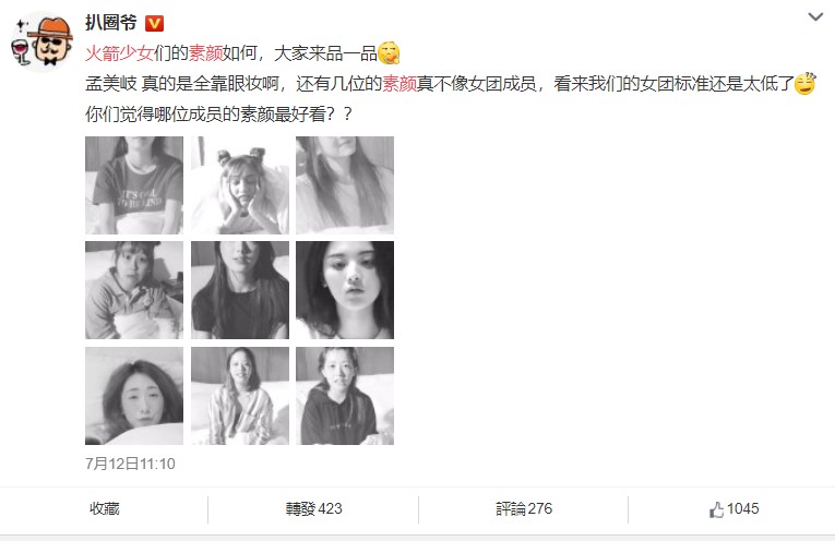 火箭少女們的素顏如何,大家來品一品,孟美岐 真的是全靠眼妝啊,還有幾位的素顏真不像女團成員,看來我們的女團標準還是太低了,你們覺得哪位成員的素顏最好看??