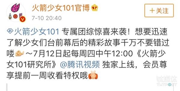 昨日中國團綜《火箭少女101研究所》第一期順利上線,網路上所有的猜測都將化解,可以繼續看到「火箭少女101」維持組合團體,安了粉絲的心。