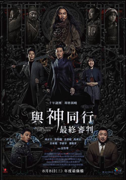 改編自漫畫家周浩旻的同名人氣網路漫畫的韓國電影《與神同行》,去年在台上映票房突破4億元台幣,登韓片在台票房冠軍,超越《屍速列車》榮登台灣影史最賣座韓片冠軍寶座!電影《與神同行》佳評如潮,深受各年齡層觀眾喜愛,續集《與神同行:最終審判》8月8日將在台上映,由原本人馬陰間使者河正宇、朱智勛、金香起演出,在加上電影《屍速列車》帥氣強悍的男星馬東石,延續第一集的劇情,讓影迷們都好期待。