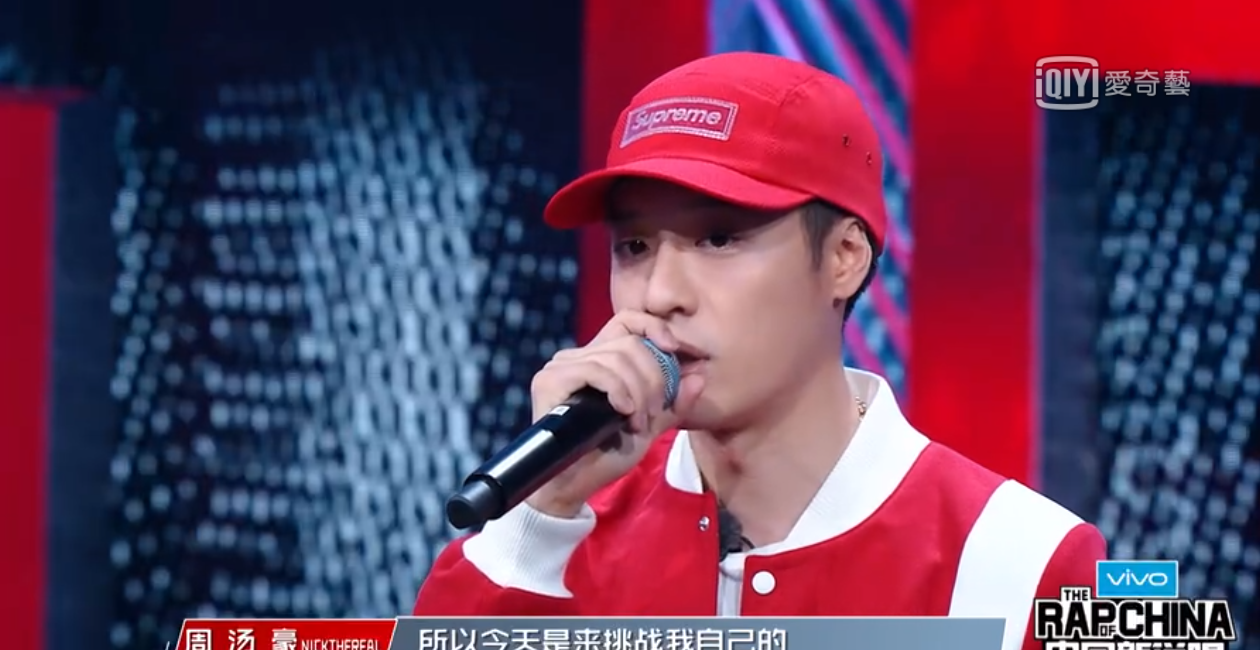在上台前,四位製作人都相當期待他的表現,有點小小騷動,吳亦凡還故意嗆說:「像年輕時候的瑋柏,瑋柏現在已經老了,老了!」,潘瑋柏還開自己玩笑:「他是瘦版的我。」而張震嶽也問出了大家好奇的問題,其實在台灣周湯豪已經有一定的知名度了,那來到著個地方,跟其他人比賽,你會緊張嗎?周湯豪嚴肅的說:「其實是蠻緊張的,因為是第一次以饒舌歌手的身分站上這個舞台。」更表示:「這次機會來了,我想要回去抓住我的夢想,所以今天是來挑戰我自己的。」也說出了在場選手的心聲,許多選手已經是律師、爸爸、媽媽,他們都因著這次節目的機會,來到舞台上,能夠有一個平台繼續完成自己的夢想。周湯豪一說完,立刻引起台下選手的掌聲。