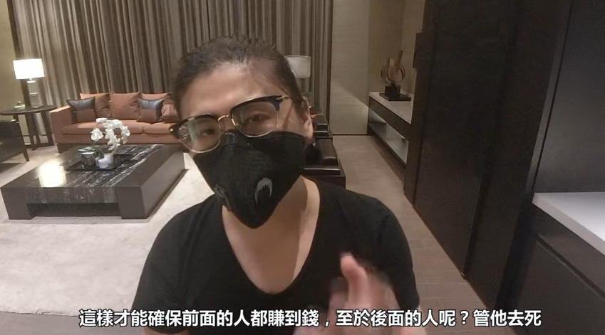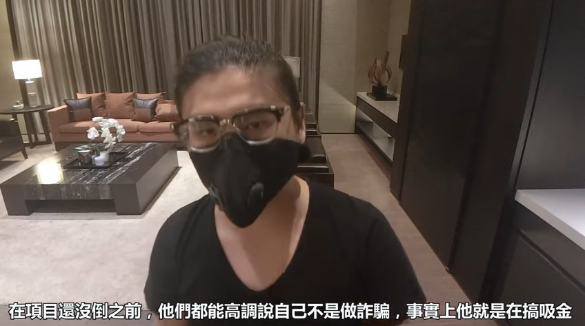 教授鼠鼠表示此種資金盤有別於直銷,也就是他們根本沒有實際的商品要銷售,公司僅僅是一個包裝,但他們會不斷的拉人進來,在項目沒有倒之前,都能夠強調自己不是詐騙,但透過這種方式卻能不斷吸金:「這樣才能確保前面的人都賺到錢,至於後面的人呢?管他去死」,最後他也呼籲有意要參與資金盤的人:「我誠摯的奉勸你想清楚」。