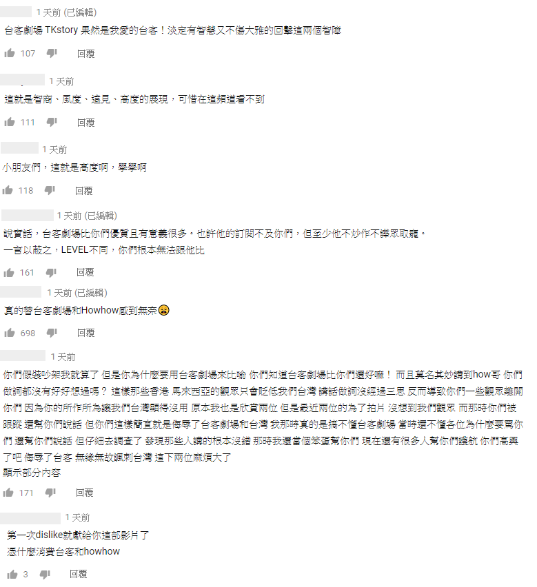 其實不只台客劇場,小玉的歌詞中還出現了HowHow:「每天在頁配,想成為清流howhow」。而兩人其餘的歌詞也都是在diss對方,影片目前已經高達1.2萬「倒讚」。