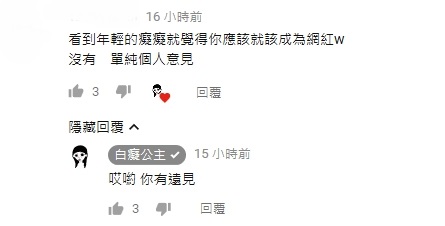 知名Youtuber「白癡公主」,又稱「癡癡」因為學生時惡搞迪士尼動畫配音作業爆紅,水靈靈的大眼和纖瘦的身材是她的招牌,癡癡時常在頻道分享小資女料理還有配音教學,自然不做作但又很搞怪的作風大受網友歡迎,youtube頻道的訂閱人也已經超過百萬。