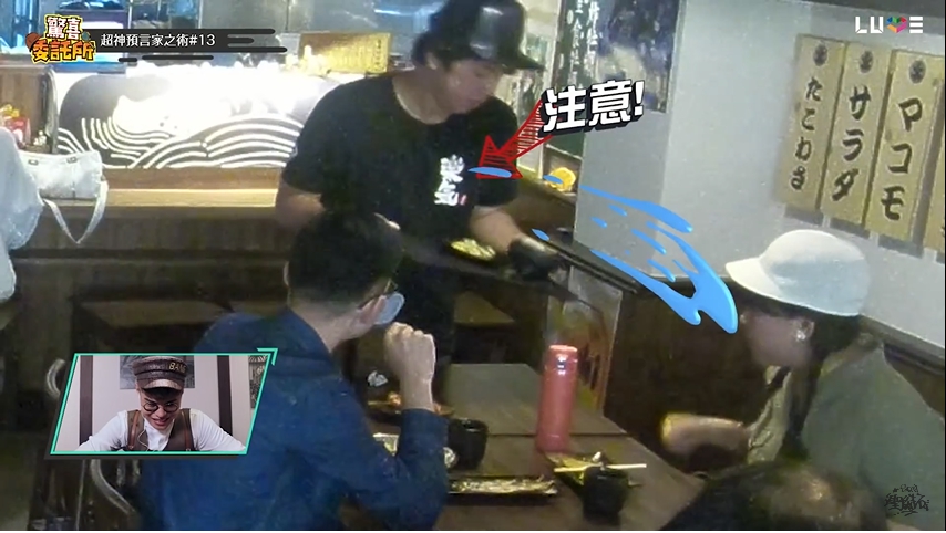 為了證明自己的預知能力,Allen首先叫古娃娃往旁邊挪一個位子,古娃娃疑惑的照辦了,結果下一刻店員就不小心手滑把味噌湯灑到了她先前坐的位置上,接著Allen又準確的預言到隔壁桌的情侶將會大吵一架,一切都如期發生,令古娃娃大呼「好毛喔,雞皮疙瘩都出來了」