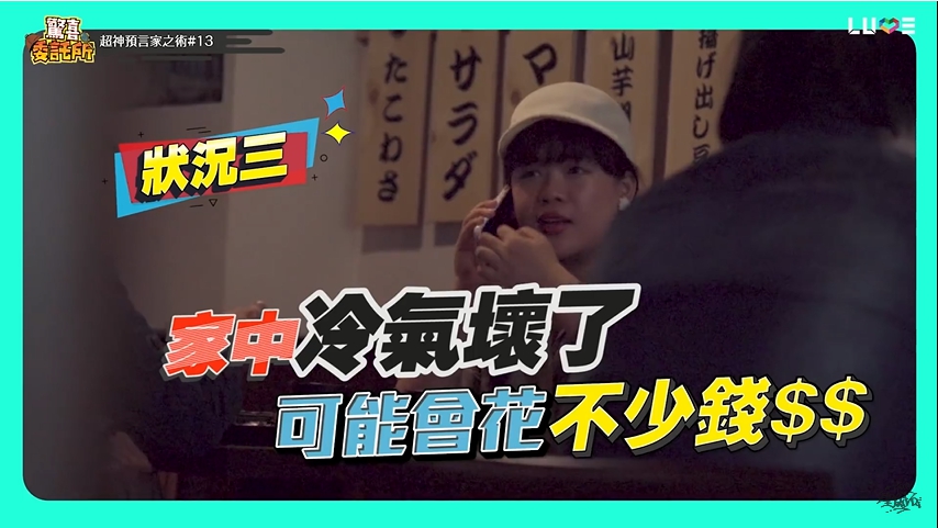 逐漸開始相信朋友所言的古娃娃興奮的叫Allen幫她「算命」,Allen於是握緊她的手假裝認真感應,然後篤定的判定她會「破財」,隨後古娃娃立刻接到男友的電話,得知家中冷氣壞了,換新要花不少錢,精準的預測讓古娃娃對Allen深信不疑。接著Allen便放出「大招」拿出兩個防毒面具叫她戴上,下一秒店裡便失火冒出了濃濃白煙,誇張的場驚令古娃娃非常傻眼,此時聖結石便瀟灑的登場,解釋說一切都是為了整人影片《驚喜委託所》設計的。