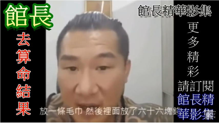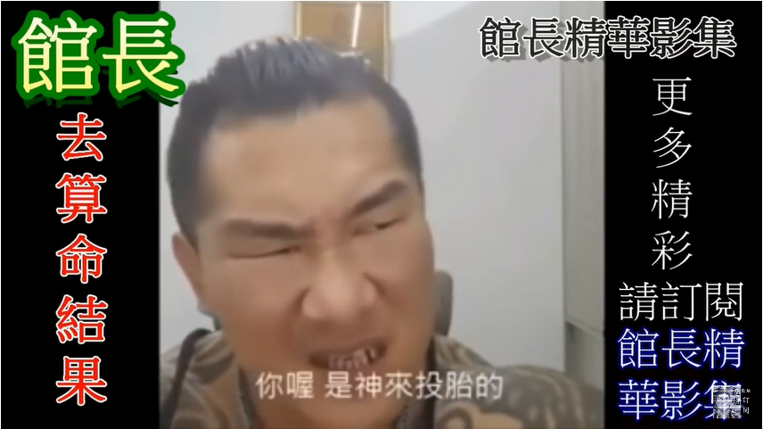 館長分享他曾遇過一個算命仙說他「不是人,是神來投胎」,並說他有「閻羅的面相」,館長在影片中怒罵「老子生出來就是這個X巴臉,這個兇臉」,表示不信這個說詞。算命仙還恐嚇他,說他的店門口有「刀煞」,並要求他花一萬八來作法消災,館長覺得寧可信其有,並且也好奇算命的究竟會出什麼招,便答應出錢。