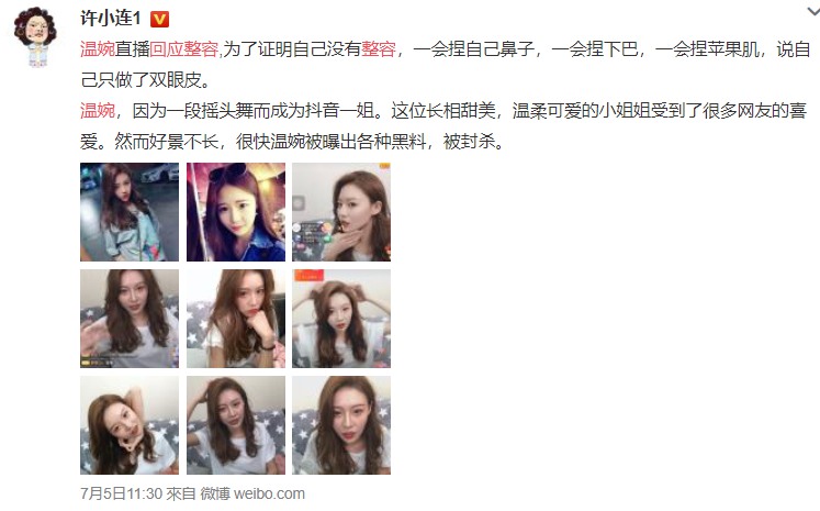 其實,上兩個月溫婉就有復出跡象,時不時在微博秀圖,開直播,雖然被很多網友diss顏值和抖音相差太大,但話題量和熱度一直還在。