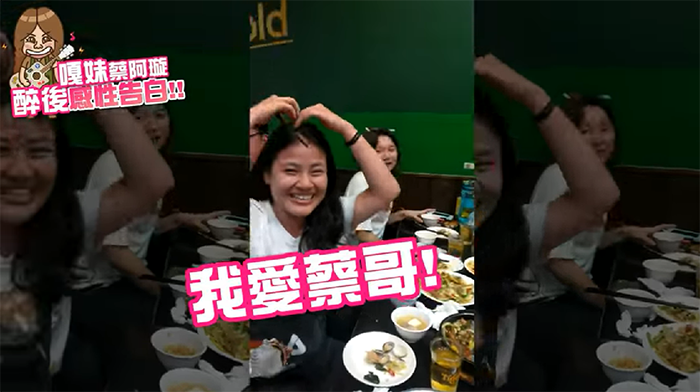 17日蔡阿嘎在臉書放上「嘎妹」蔡阿璇的影片,更表示:「兩杯啤酒就醉了的嘎妹,突然對蔡哥來個真情大告白!!!」只見影片中嘎妹因為喝醉而對與阿嘎同為「七月半」樂團的「蔡哥」大膽告白:「我愛蔡哥」,不過嘎妹接著卻補一句:「雖然阿傑比較帥」,有趣的是阿傑和蔡哥兩位當事人都在一旁,被告白的蔡哥非常尷尬,但旁邊眾人都笑翻,氣氛非常歡樂。