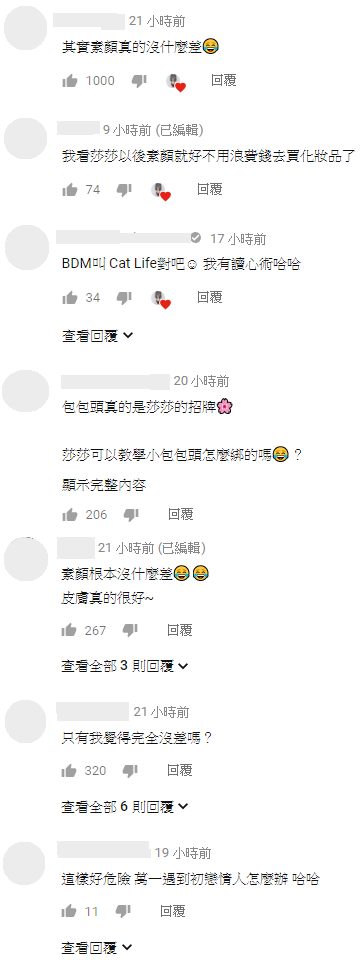 而愛莉莎莎的好肌膚也讓網友大讚:「素顏根本沒什麼差」、「其實素顏沒什麼差欸」、「我看莎莎以後素顏就好不用浪費錢去買化妝品了!」、「其實素顏真的沒什麼差」、「不需要没有安全感」,不過也有粉絲超為她擔心:「這樣好危險 萬一遇到初戀情人怎麼辦 哈哈 。」