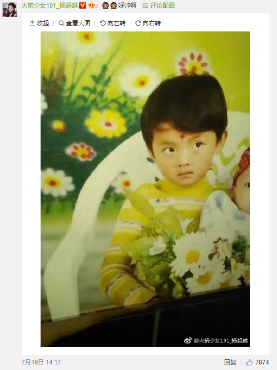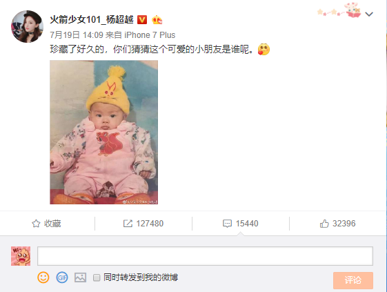 兩張幼年時期的可愛照片引起網友轟動,看來就算她的實力還沒有辦法贏得所有人的肯定,但原原本本的楊超越就已經深受眾人喜愛,現在的火箭少女101女團剛出道,也有許多網友並不看好,但可以在各樣的活動中看見楊超越認真努力練習的身影,只期待下一次歌曲她能有更好的表現。近期,「火箭少女101研究所」團綜也播出了,讓大家還是可以再次看到火箭少女101可愛小姐姐們的互動!