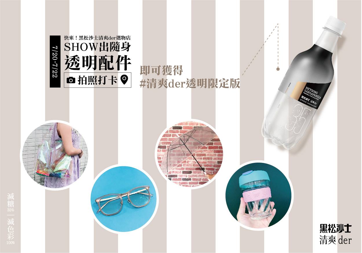 看到這裡姊妹們是不是都蠢蠢欲動,想要急著嚐鮮呢?這款「黑松沙士清爽der透明限定版」將在7/20於黑松沙士的自家選物店開賣,而且在7/20~7/23期間,選物店也推出一系列「透明活動」,只要出示你身上的「透明產品」,就能免費獲得一瓶「透明版黑松沙士」。另外,7/23開始大家也可以在蝦皮購物網上以限時方式訂購喔!