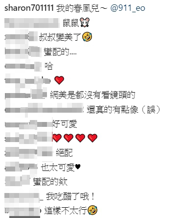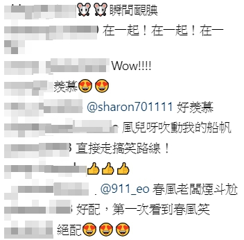 兩人的合照也意外引起網友的討論,不少人狂敲碗:「滿配的」、「在一起!在一起!在一起!」、「覺得可以」,也有人笑虧:「春風哥的殺氣瞬間化解」、「瞬間靦腆」、「鐵漢柔情。」