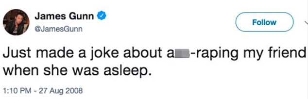 ▼詹姆斯岡恩甚至曾經開玩笑要強姦女性友人,立刻就引起了大量網友批評。