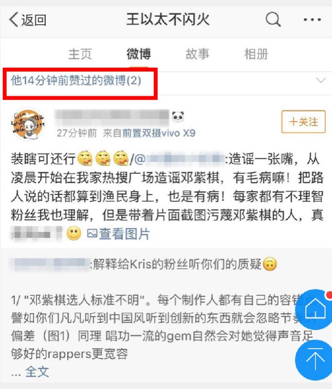 《中國新說唱》到目前為止播出了第二期,話題討論度持續不下,隨著節目的播出,網上有不少引人熱議的話題,近期最大的話題就是有關於屬於吳亦凡戰隊的王以太點讚到diss吳亦凡的微博了。讓許多霧裡看花,摸不著頭緒⋯⋯而該diss吳亦凡的內容是鄧紫棋的粉絲向吳亦凡粉絲解釋有關於「鄧紫棋戰隊選人」標準不清楚的問題,然後不知道為何屬於吳亦凡的人會點讚到diss吳亦凡的微博,這到底是什麼一種操作?王以太今天親上微博說明了⋯