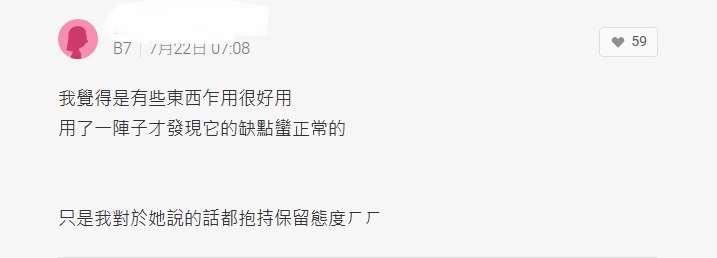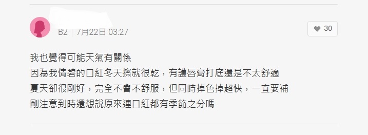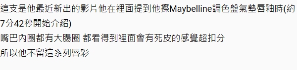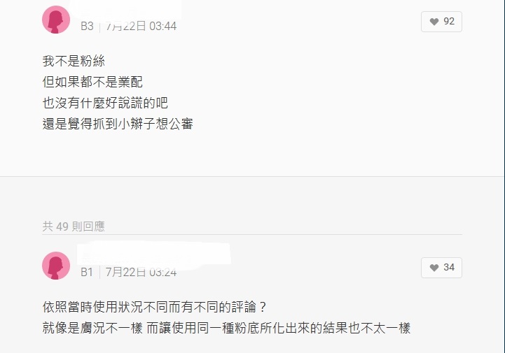 看到這則PO文許多網友認為原PO講的太過分,像是「抓到小辮子就想公審」,回應道「如果都不是業配也沒有什麼好說謊的吧」、「有些東西乍用很好用,用了一陣子才發現它的缺點蠻正常的」,也有人分享自己的經驗說明美妝產品依季節、膚況不同,用起來的效果也相差甚大,同一款口紅冬天用起來乾,夏天用可能就剛好,沒必要抓住別人的小問題追根究柢。