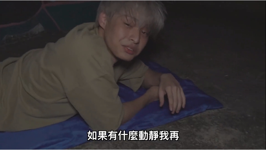 一進入廢墟,放火便大膽的在各個房間翻翻找找、四處探險,直到翻到床的時候才猶豫了一下,他大呼網路上的影片看太多,很怕亂翻的時候「翻出屍體」。隨後放火便打好了地舖準備睡覺。